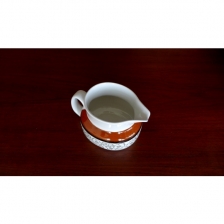 Agneta 奶壺 尺寸: W13 x H8 cm 瑞典Gefle窯廠,Agneta系列為Helmer Ringstrom設計並於1975-79年期間製造。粗線畫出的花朵圖案是用圖章轉印而成,質樸而可愛並且散發出溫暖和懷舊的氣氛。 NT$1900