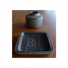 丹麥陶瓷老件 Stoneware vase and square dish designed by Valdemar Petersen for Bing & Grøndahl, Denmark vase瓶(直徑16、高12.5 cm) : NT$9800 square dish盤(寬21、高3.5 cm) : NT$4800