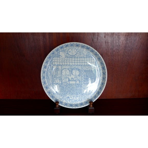 Boro 餐盤 尺寸: W24.5 x H2.5 cm 年份: 1960年 這是瑞典建築公司BORO-HUS專給購房者的一系列禮品,從幾個選擇的容器上繪製了Stig lindberg 像石版畫一樣描繪了真實的幸福家庭形象,背面指定帶有Gustavsberg 特殊設計的徽章標示。這是一個罕見的系列,因為沒有銷售,在市場上很少見,因此被稱為幻影系列。