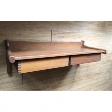 Kai Kristiansen wall mounted teak shelf with drawer, manufactured by Kaagaard's Møbelfabrik (double version) W69 x D28.5 x H22 cm
