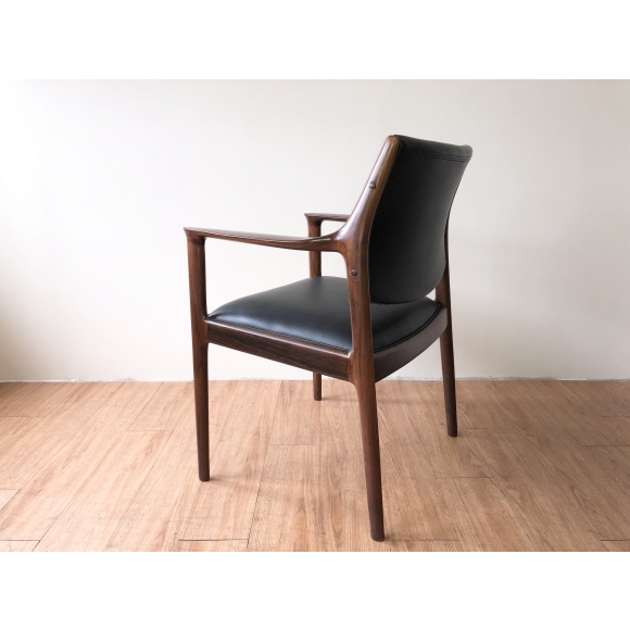 Torbjørn Afdal rosewood armchair, model Elton, manufactured by Nesjestranda, Norway 1960 這款優雅的Elton 扶手椅系列,由Torbjörn Afdal於 20 世紀 60 年代初在挪威設計,有機形狀的椅架採用玫瑰木製成,紋理強烈,從背部的曲線延伸到扶手的平面,自然連貫,扶手跟椅背的接合處理得十分細膩,工藝精湛。