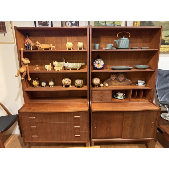 優雅的展示櫃,提升空間美感,繫於創造層次感,不需要繁瑣的夾層,一個精美的展示櫃就可以將目光吸引到不同高度,還能讓您收藏的書籍或物件也變身成為最美的裝飾。 丹麥柚木展示櫃上方為三個層架,最上面兩個層架為可調整式,依照您的需求,調整高度,並有可拉出的展示桌,下方櫃提供充足收納空間。 不論放置在書房作為書櫃與書桌,或是在客廳或商務零售空間作為展示架,優雅出眾。 物件狀態非常好。 W90 x D43.5 x H175 cm