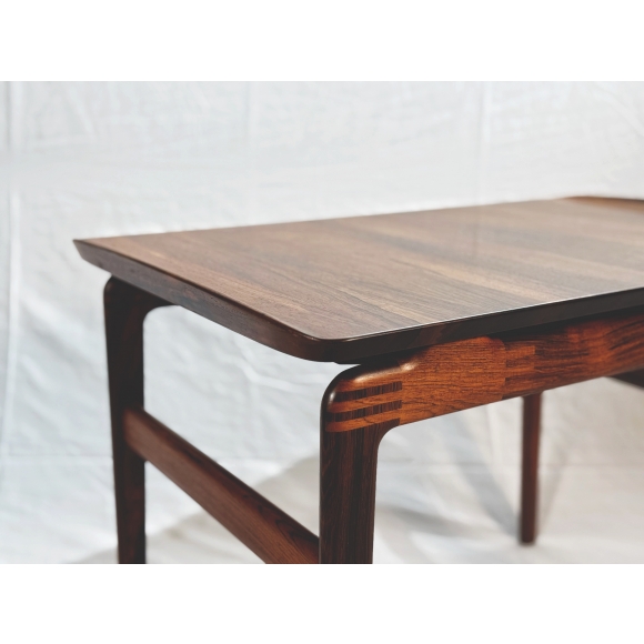 該設計是丹麥櫥櫃製造商精湛工藝的另一個絕佳範例。框架上的漂亮連接工藝以及上方的漂浮桌面呈現出珍貴木材的美麗色彩和紋理,一切都散發著精緻和前所未有的優雅。一端有一個可拉出的抽屜。