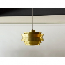 Trava Brass Pendant by Carl Thore Trava 吊燈由瑞典設計師Carl Thore 設計, 1960年代由瑞典 Granhaga MetalIndustri 公司製造。Trava”可以翻譯為“堆疊”,顧名思義,它的設計特點是大小燈罩對稱地堆疊在一起。內部白色塗層使投射出的光線變得柔和、美麗地分佈。 尺寸: Ø24,高15cm