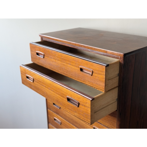 這款抽屜櫃結構精巧,擁有六個寬敞的抽屜,每個抽屜均配有雕刻精美的嵌入式把手,展現了丹麥工藝的精妙優雅,抽屜滑動順暢,展現了其卓越的做工和經久耐用的設計。