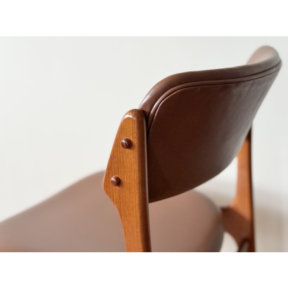 Erik Buch teak chair, Model 49 帶有「浮動」椅座,Model 49 椅子由 Erik Buch 為丹麥家具廠 Oddense Maskinsnedkeri設計,椅子採用堅固的柚木框架,展現了優質工藝的美麗細節。 Erik Buch 憑藉其標誌性的Model 49椅子(1949年)首次獲得成 功。他的許多設計都以其創作年份命名,尤其為家具製造商 Oddense Maskinsnedkeri 的設計。