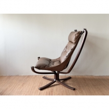 Falcon Chair 獵鷹椅 由 Sigurd Resell 設計的北歐名作,就如其名,獵鷹展開翅膀的優 雅而有衝擊力的設計。懸掛在框架上吊床狀柔軟觸感座面,如同漂浮在空中存在,營造出被包圍的舒適感,可說世界上最讓人放鬆的椅子之一。